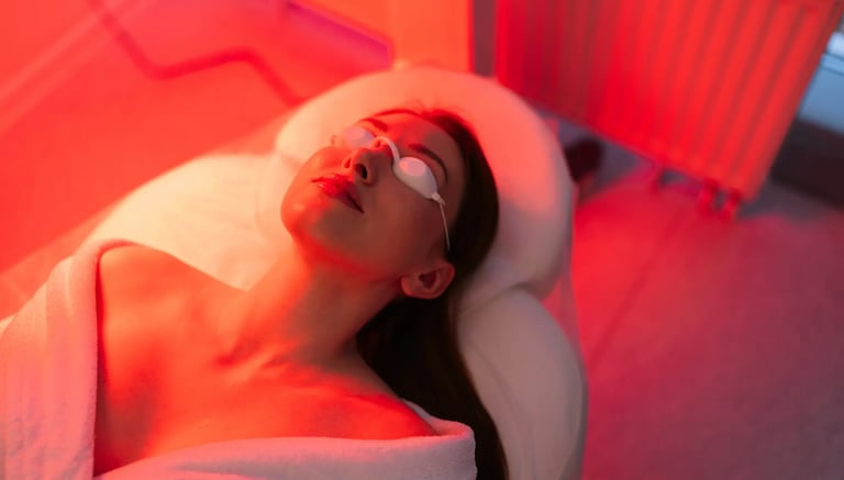 Step into the restorative glow of red light therapy, where deep, nourishing wavelengths penetrate your cells to rejuvenate, repair, and revitalize from within.